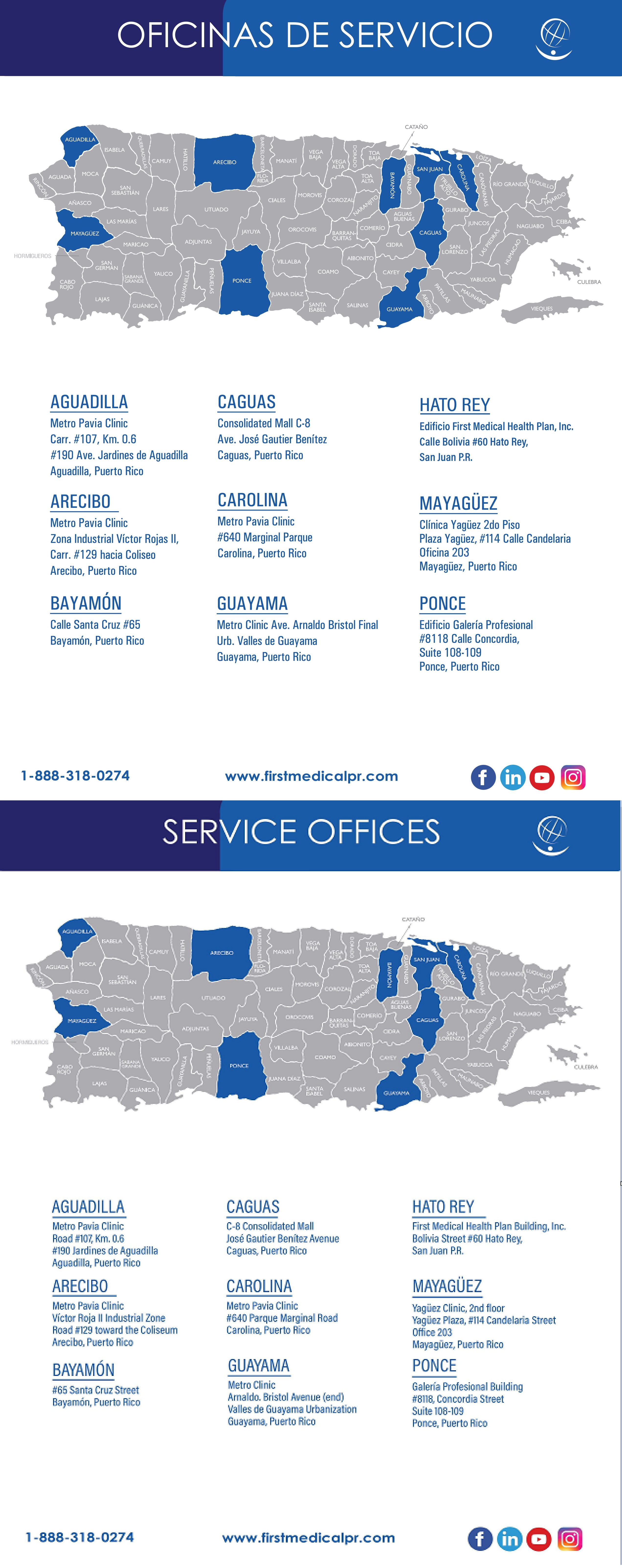 Si desea visitarnos, tenemos disponible nuestros centros de servicio. Utilice el mapa para identificar el centro más cercano. Para ver el mapa, oprima aquí.
