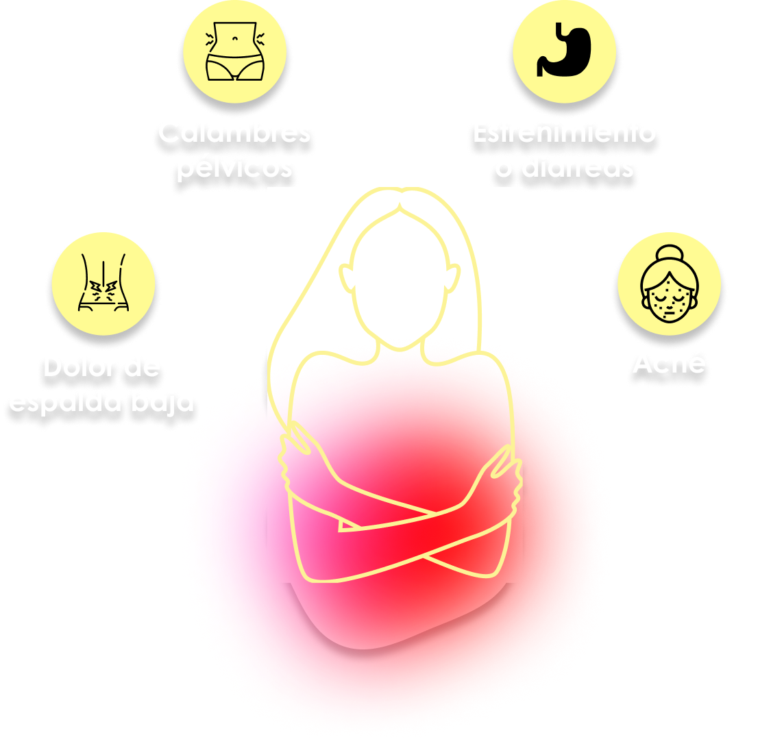 Síntomas fisiológicos comunes del Síndrome Pre-Menstrual.
